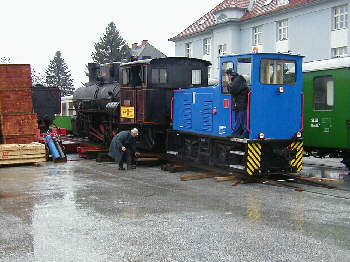 ...auf der die 83er dann mit der Jenbach auf die Geleise gezogen wurde. |