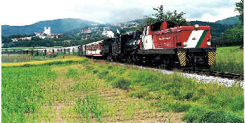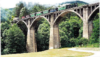 ...wie man auf diesem Bild sieht. Die 83180 wurde wieder mit der VL16 nach Anger zurückgeschleppt, und der Jubiläumszug fuhr mit der KH101 weiter. (Sie sehen den Zug auf dem Grub-Viadukt.) |