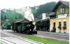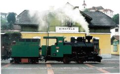 Abnahmefahrt der Dampflokomotive 100.13Von der Werkbahn des ÖAM (Österr. Alpine Montan Gesellschaft) - Werkes Donawitz stammt die sich heute im Privateigentum befindende Dampflokomotive 100.13 (Achsfolge: Bn2t, WLF 17609/1947), die seit heurigen Frühjahr in Weiz auf ihre ersten Einsätze wartet. Ursprünglich als zweiachsige Tenderlok gebaut, erhielt sie im letzten Winter einen zweiachsigen Schlepptender, der nach Plänen des Eigentümers neu gebaut wurde. Lediglich das Untergestell samt Radsätzen stammt von einem rumänischen Langholzwagen, diese Bauteile wurden nach der Aufarbeitung in der für den Tender erforderlichen Form wieder zusammengebaut. Der Tender ist 4300mm lang (LüP) und 1800mm breit (wie auch die Lokomotive). Das Fassungsvolumen für Wasser ist 3,5m³ und für Kohle 1,5m³. Das Gesamtgewicht (voll ausgerüstet) beträgt 9000 kg. Mit der Anschaffung des Schlepptenders ist der Wirkungskreis dieser Lokomotive erheblich vergrößert worden, auch kann auf das Mitführen eines Wasserwagens, wie es bei den Einsätzen auf der Stainzer Lokalbahn üblich war, verzichtet werden. Der Betrieb der 100.13 ist künftig sowohl als Schlepptenderlok als auch als Tenderlok möglich. Am 31.8.2002 erfolgte die behördliche Abnahmefahrt der 100.13, bei der es keinerlei Beanstandungen aus technischer Sicht gab. Diese Fahrt wurde gleich zur Überstellung der Lokomotive von Weiz nach Birkfeld genutzt, wo sie nun stationiert ist. Von Birkfeld aus soll die 100.13 zur Führung von Sonderzügen für Kleingruppen eingesetzt werden. Einige Bremsproben wurden auf dem geraden Streckenstück nahe der ehemaligen Haltestelle Büchl durchgeführt. Im Bahnhof Anger erfolgte die Verwiegung von Lok und Tender auf der hier noch vorhandenen und funktionierenden Waage. Technische Daten: