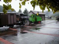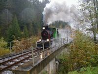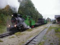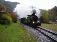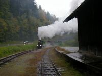 Sonderfahrt mit 100.13 am 12.10.2002Die 100.13 brauchen wir mittlerweile wohl nicht mehr extra vorzustellen, das ist auch an anderer Stelle unserer Homepage geschehen. Jedenfalls konnten Eisenbahnfreunde am 12.10.2002 die Gelegenheit nutzen und mit einem Fotozug im Stil der alten GmP von Birkfeld nach Anger und retour fahren. Leider regnete es in Strömen, aber das konnte den wenigen Unentwegten nicht viel anhaben und somit konnten doch einige Fotos von dieser Fahrt Zeugnis ablegen. Die Bilder im Nachsatz sollen diese Fahrt dokumentieren. Karl Schellauf Text und Bilder: Karl Schellauf | ||||||||||||||||||||||||