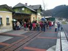 Rückblick Weihnachtsmarkt:Mit großem Erfolg wurde am Wochenende 07.12. – 08.12.2002 der Birkfelder Weihnachtsmarkt veranstaltet. Am Samstag fuhr die 100.13 mit einem Pendelzug von Birkfeld nach Anger und zurück. Am Sonntag zog dann die 83-180 einen Sonderzug von Weiz nach Birkfeld und zurück. In Birkfeld wurde im Rahmen dieses Weihnachtsmarktes allerlei schönes aus dem Bereich von Kunsthandwerk und Musik geboten. Ein Märchenerzähler las in einem Waggon Weihnachtsgeschichten für Kinder. Kulinarisch gab es Brennsterz und Rahmsuppe (eine steirische Spezialität), aber auch anderes traditionelles wie etwa Kastanien oder Bratwürstl. Zu Mittag fuhr auch am Sonntag wieder die 100.13 mit einem Pendelzug nach Anger und zurück. Karl Schellauf ![]() ![]() ![]() ![]() ![]() ![]() ![]() ![]() | ||||||||||||||||||||||||