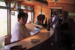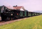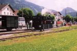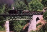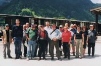 Bregenzer WaldbahnAm Samstag ging es zur Bregenzer Waldbahn, die vor einigen Jahren Schlagzeilen machte weil es beim Hochwasser eine Brücke weggespühlt hatte. Doch dieses Unglück sollte sich im nachhinein als Riesenglück herausstellen! Wurde doch in einem gemeinsamen Kraftakt aller in der Region an der Bahn interessierten, nicht nur die Brücke wieder aufgebaut, nein die Bahn bekam auch eine neue Remise und sogar eine Unterstellmöglichkeit für die Wagen. Das weitere Problem, daß das Stumpfgleis zum Umsetzen der Lock im Wege war löste man mit einer Segmentdrehscheibe. Das mußten wir uns natürlich erst mal anschauen: Einige eingefleischte suchten sich natürlich den zweitschönsten Platz im Zug, den Schankwagen. (Der schönste ist definitionsgemäß auf der Lok.) Und da herrschte schon bald eine tolle Stimmung: Als Lok diente die U25 / Bezau, und unsere Nachwuchszugbegleiter waren mit vollem Eifer bei der Sache: Bei den Bildern von der Fahrt dürfen natürlich die der bekanntesten Brücke Österreichs nicht fehlen! Bei einem Fotohalt hatten wir genug Gelegenheit, sie auf Film, Chip oder Magnetband zu bannen: Und zum Abschluß noch einige Impressionen von der Fahrt: Und da dies die letzte offizielle Veranstaltung war, der Nachmittag stand zur freien Verfügung, darf an dieser Stelle natürlich das obligatorische Gruppenbild fehlen! Mein Gesicht fehlt natürlich, aber es ist irgendwo anders hier auf dieser Seite zu sehen. Text und Bilder: Oskar