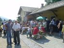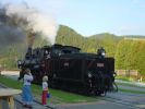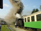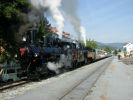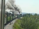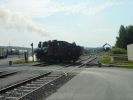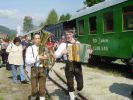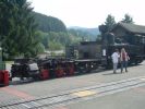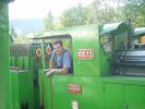 Sonntag, ein Fest wie aus dem BilderbuchAuch wenn dies kein Fotozug war wie am Vortag, zum fotografieren gab es mehr als genug! Zum Beispiel die Ankunft der 83er (Die Kh war schon am Zug), die erst mal warten musste, bis der große Bruder passiert hatte. Da ist er, unser Zug mit der Doppeltraktion in voller Länge abfahrbereit in Weiz und kurz darauf auf dem Weg nach Birkfeld: Wie viele im Zug waren, zeigte sich erstmals in Anger, der Verkaufsstand war umlagert wie selten. Auch unsere beiden Musiker sorgten im Zug und in Anger für Unterhaltung. Dann war es aber höchste Zeit, weiterzufahren nach Birkfeld, schließlich warteten die Herren Lokalpolitiker schon mit ihren Festreden! Den Anfang machte unser Betriebsleiter, und dann wurde so von manchen Rednern so manche Rede geredet. Da man mich sofort als "Hilfsheizer" beim Grill einteilte, kam ich gerade mal dazu, diese Bilder zu schießen. Unter den Rednern waren z.B. der Nationalabgeordnete Dr. Josef Trinkl und der Birkfelder Bürgermeister Franz Derler: Natürlich wurde deutlich darauf hingewiesen, dass es unser größter Wunsch und unsere nächste große Aufgabe ist, unsere U44 wieder duch das schöne Feistritztal dampfen zu lassen. Wie sie derzeit im zerlegten Zustand aussieht, konnte man hier sehen: Mein Freund Karlie schwebte derweil im 7. Eisenbahnerhimmel. (So könnte man doch dieses Bild interpretieren...) Anschließend sorgten die Göstinger Spatzen, tatkräftig unterstützt von unserem Clubkollegen Fredi Stolla an der Teufelsgeige, für eine tolle Stimmung. Es gab ein rauschendes Eisenbahnfest mit Grillwürstel, Steaks, Kuchen aber auch steirischen Spezialitäten wie Brennsterz: Sehr gut angenommen wurde auch die Möglichkeit, einen Teil der Strecke auf dem Führerstand der Lok mitzufahren. Unsere Loks pendelten unermüdlich hin und her und so mancher Euro wurde zugunsten unserer U44 erwirtschaftet: Nachmittags gab es dann so einen wirklich regen Zugverkehr - wie in besten Zeiten. Erst fuhr die 83er nach Weiz, dann die 100.13 nach Anger. Irgendwann zwischendurch auch die 100.13 nach Anger. Anschließend die Kh nach Weiz, während die 83er schon wieder auf dem Weg nach Birkfeld war. Zugkreuzungen in Anger und Oberfeistritz waren angesagt, und eine willkommene Gelegenheit für Fans mal schnell ein Stück die Strecke owi und wieder auffi zu fahren. Auch die Fotofreunde kamen auf ihre Kosten! Nun, auch dieser Tag war leider einmal zu Ende, und die 83er brachte uns wieder nach Weiz... Ein wunderschönes Fest hat auch einmal leider ein Ende! Text und Bilder: Oskar Sembach