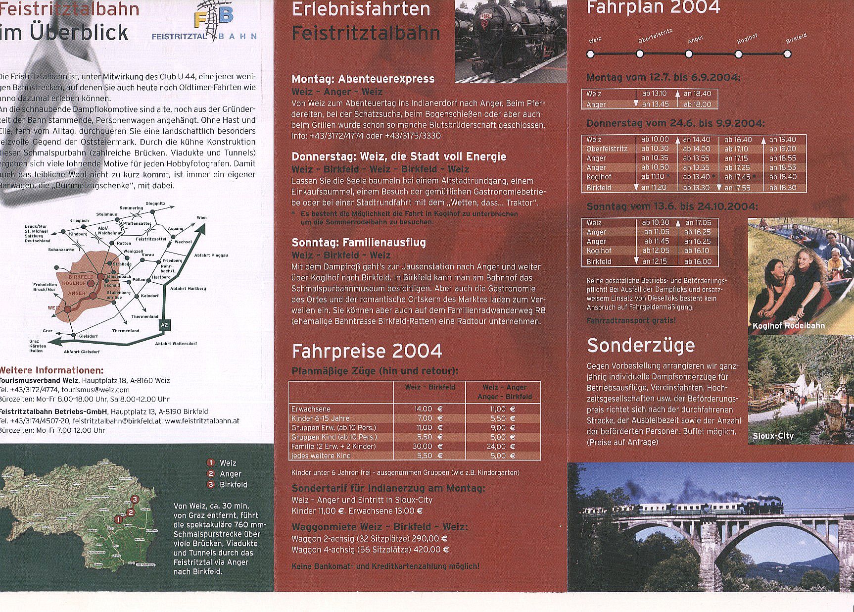 Bedingt duch den Anschluß an "Bahnerlebnis Steiermark" erschien erstmalig unser Prospekt in völlig neuem Desing: