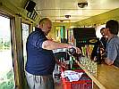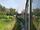 ⇐ ZurückSamstag: Fotosonderzug mit HinternissenAls ich am Samstag den Bahnhof erreichte, hörte ich sofort die Schreckensmeldung: Die Dampflok 100.13 hat technische Probleme. Und so kam erst einmal unser "blaues Wunder" die Jenbach zum Zug. Ich finde, auch sie hat keine schlechte Figur gemacht: Glücklicherweise konnten die Probleme an der 100.13 gelöst werden und sie konnte den Zug ab Oberfeistritzt übernehmen. So kamen auch die Dampflokfans unter den Fotografen auf ihre Rechnung. Die folgenden Bilder von Dietmar Zehetner werden dies beweisen: Der Fotosonderzug war völlig ausgebucht, und das hieß, dass ich die raren Plätze den zahlenden Gästen überließ und erst um 13:00 mit dem regulären Zug nach Birkfeld fuhr. Im Zug herrschte natürlich auch eine Bombenstimmung, kein Wunder bei der der Bewirtung von Ernst mit seinen legendären Bummelzugbretzeln nebst Getränken und anderen Mehlspeisen und einer Musik, die steirisch vom feinsten aufspielte! In Koglhof kam uns, mittem im Qualm der Lok, die Draisine mit einem Filmteam entgegen, was mich bewog, den gemütlichen Barwagen zu verlassen und den Filmern über die Schultern zu schauen: Bei dieser Gelegenheit entstanden auch ein paar schöne Bilder aus der Lokführerperspektive, die ich Ihnen nicht vorenthalten will: Und in Birkfeld wurde mit dem verstärkten Musikteam weitergefeiert: Leider kam die Rückfahrt des Zuges viel zu früh, aber was hilfts, alles hat einmal ein... Text: Oskar, Bilder: Dietmar und Oskar