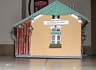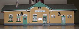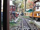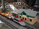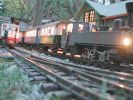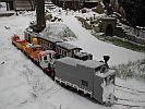 Die FTB dampft in WürzburgLGB-Gartenbahnen gibt es viele, aber eine mit dem Motiv "Feistritztalbahn" und mit deren Bahnhöfen, die ist sicher einmalig! Aber lassen wir doch ert mal den Erbauer, Thomas Bloss sprechen: Am 24.12.1990 fing alles mit einer LGB-Startpackung an. Seit 1997 ist die Bahn im Garten. Ursprünglich bestand die Strecke aus einer eingleisigen Strecke zwischen zwei Wendeschleifen. In der oberen ist der Bahnhof Birkfeld mit Betriebswerk in der unteren der Haltepunkt Ratten. Später wurde ein Teil der oberen Wendeschleife abgedeckt. auf dem so entstandene Kehrtunnel befindet sich ein Wohnhaus und eine Kapelle. Gleichzeitig wurde das Gleis 2 in einem Abstellgleis vortgefürt. Dieses Gleis ist mitlerweile das Streckengleis nach Koglhof. Dieser liegt in einer Schleife zwischen einem Kehrtunnel und einer Bogenbrücke. Über diese soll die Strecke in den nächsten Jahren verlängert werden. Da Koglhof nur als Ausweiche konzipiert ist, ergibt sich folgendes Betriebschema: Die U43 fährt mit 4 Personenwagen, darunter der Bi62 der Feistritztalbahn, zwischen Birkfeld und Koglhof hin und her. Im Güterferkehr wird hier meist die Disellok eingesetzt. Auf der alten Strecke wird die Steinz mit einem Personenwagen und einigen Güterwagen eingesetzt. Zu Bauarbeiten wird der Rottenkraftwagen eingesetzt. An Sonderfhrzeugen existiert eine selbstgebaute Schneeschleuder. Diese ist bei Pulverschnee sogar funktionsfähig. Dem möchte ich nichts mehr zufügen, höchstens noch die Bilder. Von Bahnhof Birkfeld:Doch, ein Bahnhof ist zu wenig! Deshalb entsteht derzeit der Bahnhof Koglhof: Zum Abschluss noch einige Bilder von Dingen, die es dort nicht gibt: Zum Beispiel von der Schneeschleuder... ...oder von der Ausfahrt eines Dampfzuges in Richtung Ratten...