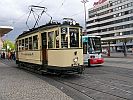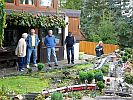 Herbstausflug in die Nürnberger Gegend (05.-08. Oktober)Vor zwei Jahren wurde ich von einem Clubkollegen angesprochen, ob ich es nicht realisieren kann, dass man sich die sehenswerte LGB-Anlage des Franz Grund anschaut. "Kein Problem", und schon war die Idee geboren, einmal einen Ausflug in die Nürnberger Gegend zu organisieren. Am Donnerstag sollte es dann endlich so weit sein. Pünktlich rollten meine Freunde mit dem ICE im Nürnberger Hauptbahnhof ein. Unser Reisereferent übertrug mir - das dürfte ein Novum sein - die Reiseleitung, und so hieß es sofort duchstarten zum ersten Ziel, zur Gartenbahnanlage des Franz Grund. Und diese Anlage ist wirklich sehenswert. Sie dürfte sicher eine der sehenswertesten Europas sein. Eine über 200 Quadratmeter perfekt und mit einer gerade versessener Liebe zum Detail gestaltete LGB-Miniaturlandschaft begeisterte. Der wohl sehenswerteste Blickfang ist der Landwehrviadukt. Den Aband ließen wir im Quartier, das außer den Fremdenzimmern auch ein wirklich empfehlenswertes Griechisches Restaurant beherbergt, ausklingen. Dabei stellte es sich heraus, dass es dort kein Früstück gibt. Guter Rat war aber in diesem Fall nicht teuer, mein Schatz realisierte ganz einfach und spontan ein Frühstück in unserem Wintergarten. Das erste Ziel am Freitag war das Feldbahnmuseum500, das eine umfangreiche Sammlung von Feldbahnfahrzeugen der Spurweite 500mm beherbergt. Da auf dem weitläufigen Gelände auch eine grosse Gleisanlage existiert, kann man die Fahrzeuge auch probefahren, was wir auch taten. Ich brauch wohl nicht zu erwähnen, dass diese Führung weit länger dauerte als die übliche Stunde, und wenn ich nicht zum Aufbruch gedrängt hätte hätte sie noch länger gedauert! Nach dem Mittagessen stand das historische Straßenbahndepot in Nürnberg/St. Peter auf dem Programm. Die geplante Sonderfahrt mit einer historischen Straßenbahn musste ich leider absagen (Wir waren einfach nicht genug Leute um es zu bezahlen.), aber es sollte anders kommen. An diesem Nachmittag war ein historischer Wagen für eine Hochzeitsgesellschaft bestellt, und wir durften beim Ausrücken mitfahren. Selbst ein Fotohalt am Plärrer (Der Plärrer ist in Nürnberg das, was in Graz der Jakominiplatz ist.) war drin da wir einen Linienzug vorbeilassen mussten. Am Hallertor mussten wir aussteigen, und, weil wir schon in der Gegend waren, schauten wir gleich noch die Modellbahnanlage im Spielzeugmuseum an. Abends gab es dann noch ein "Dampflokanschüren am Grill" und so manches Gespräch über den Tag. Am Samstag stand natürlich das DB-Museum auf dem Pflichtprogramm: Nachmiitags - es war nichts mehr geplant - entstand der Wunsch das Dokuzentrum zu besuchen. Gesagt, getan, die Straßenbahn brachte uns hin... ...und anschließend wieder zum Bh. Erlenstegen, von wo uns die RB3 wieder nach Rückersdorf brachte. Am Sonntag hieß es leider wieder Abschied nehmen... noch ein letztes Bierchen und dann kam er schon, der Zug von der ÖBB. Ich übergab die Reiseleitung wieder in die bewährten Hände von Gerhard und sagte baba. Ein - hoffe ich - schönes und interessantes Wochenende lag hinter uns. Und vielleicht kann man es ja in dieser oder ähnlicher Weise wiederholen... Text und Bilder: Oskar Sembach