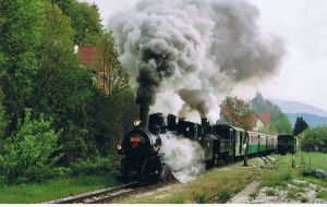 Sonderfahrt am 07. Mai 2006Im Rahmen einer Sonderfahrt gelangte an diesem Tag ein fünfteiliger ÖBB-Triebwagen der Type "Blauer Blitz" mit den Triebköpfen 5145.11 und 5145.14 von Wien über Aspang und Fehring auf die StLB - Strecke Gleisdorf - Weiz. Die große Reisegruppe stieg in Weiz in den schon bereitstehenden Sonderzug nach Birkfeld um. Der lange Sonderzug machte den Einsatz beider Lokomotiven erforderlich. Für die 83-180 war dies die erste Ausfahrt nach einem über ein Jahr dauernden Werkstattaufenthalt. Unterbrochen von einigen Fotohalten und Scheinanfahrten fuhr man nach Birkfeld und zurück. Die Rückfahrt mit dem "Blauen Blitz" erfolgte über Graz und die Semmeringstrecke. Das Bild zeigt die 83-180 und Kh 101 mit dem Sonderzug bei der Einfahrt in den Bahnhof AngerText und Bild: Dietmar Zehetner