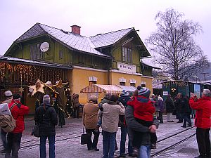 Nachlese zum Christkindlmarkt 2009 in BirkfeldDer Christkindlmarkt in Birkfeld ist mittlerweile zu einer bekannten und sehr beliebten Veranstaltung im Bereich des oberen Feistritztales geworden. Das vorweihnachtliche, stimmungsvolle Ambiente am Bahnhof bietet eine tolle Kulisse für all die Aussteller und Musikanten und vor allem für die zahlreichen Besucher. Auch im vergangenen Dezember war dieser Markt bestens besucht. An beiden Tagen durften die Organisatoren viele interessierte Menschen begrüßen. Besonders für die Kinder war bestens gesorgt, sei es kulinarisch oder einfach, um die schönen Krippen und Kunsthandwerke zu bestaunen. Etliche Perchten brachten einige spannende Momente in die „Arena“, aber auch die musikalischen Darbietungen erfreuten die Besucher. Karl Schellauf | ||||||||||||||||||||||||