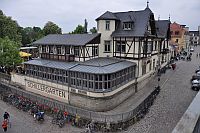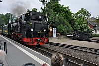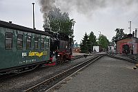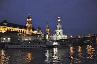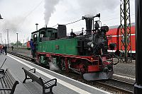 Donnerstag: Lößnitsgrundbahn (Lößnitzdackel), die Dresdner Bergbahnen und die ElbeDas erste Ziel dieser Reise war die Lößnitzgrundbahn, die seit 1883 auf ihrer 16,5 km langen Strecke zwischen Radebeul und Radeburg hin und her dampft. Selbst heute noch wird der Betrieb mit Dampfloks abgewickelt! Die Zeit bis zur Abfahrt bot natürlich viele Gelegenheiten für die Fotografen unter uns. Besonders der historische Zug, der gerade zusammengestellt wurde, fand natürlich Interesse. Schließlich war auch unser Zug abfahrtsbereit. Da dieser bedingt durch die Feiern zum, wie es in Sachsen heißt, Herrentag, mehr als übervoll war, drängten sich trotz Reservierung etliche mit Bierflaschen ausgerüstete Jugendliche in unseren Wagen. Das unsichere Wetter und die Überlegung, dass es sinnvoll ist einen Zug zu nehmen, der nicht voll ist mit heimkehrenden bierseelig feiernden, bewogen uns, gleich mit den nächsten Zug zurück nach Dresden zu fahren. Dort genossen wir nach einem sehr guten Mittagessen im Schillergarten,... ...die Dresdner Bergbahnen. Sie befinden sich am anderen Elbufer unweit der berühmten Elbbrücke, dem Blauen Wunder. Den Anfang machte die Standseilbahn zum Luisenhof. Anschließend gin es mit der ältesten Schwebebahn der Welt von Loschwitz nach Oberloschwitz. Oben hat man einen tollen Blick auf Dresden, oder man kann das kleine aber feine Museum der Schwebebahn besichtigen. Einige von uns hatten immer noch nicht genug und unternamhmen noch eine Rundfahrt mit einem dampfbetriebenen Schaufelraddampfer auf der Elbe. Mit diesen wunderbaren Ausblicken auf das nächtliche Dresen klang dieser erlebnisreiche Tag aus. | ||||||||||||||||||||||||