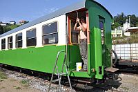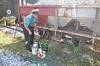 Viel Schweiß in BirkfeldIm letzten Moment, so ca. 4 Wochen vor dem Festzug tauchte Inge auf und nahm die Zügel in die Hände! Und sie schaffte es noch mit ihrem Partner und anderen Helfern, in der kurzen Zeit bei teilweise brütender Hitze und Lieferschwierigkeiten des Landrings (Alle Farben waren ausverkauft) unseren Fahrzeugpark sehenswet herzurichten! Und das Ergebnis ist wirklich Klasse! Und noch so "nebenher" war sie Ansprechpartnerin und Leiterin für all die, die unseren Bahnhof Birkfeld in einen wirklich aufgeräumten und damit sehenswerten Zustand versetzten! Da kann man nur sagen: DANKE Inge & Team! (Das Team möge mir bitte verzeihen, dass ich keine Namen nenne, aber die habe ich leider nicht.) | ||||||||||||||||||||||||