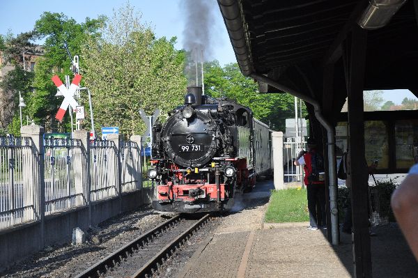 Einfahrt unseres Zuges im Bahnhof Zittau.