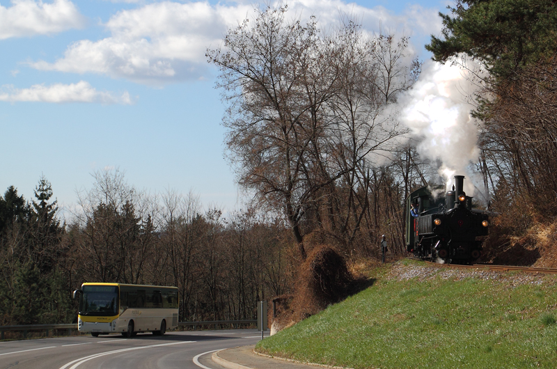 Der Zug und der Bus hatten das gleiche Ziel. Sie trafen nahe der Haltestelle Hart-Puch aufeinander. Der Zug war allerdings ungleich besser besetzt..... Foto: Dietmar Zehetner
