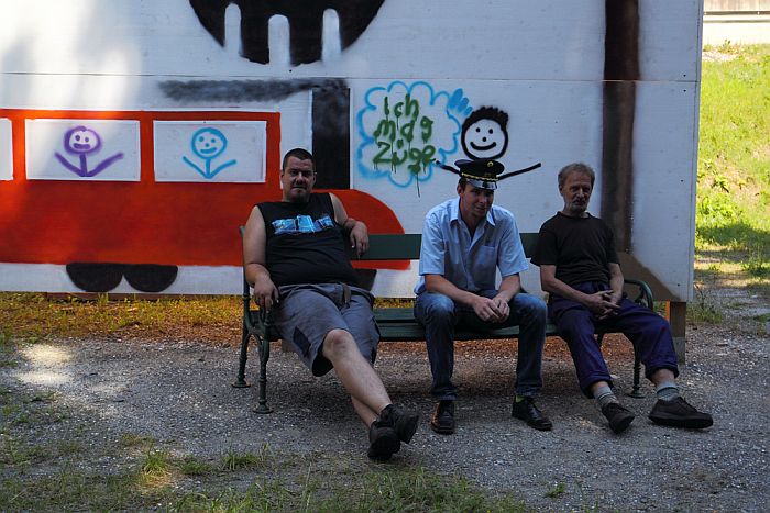 Stefan und Peter vor dem "Bahnhof" Hart-Puch, Foto: Dietmar Zehetner