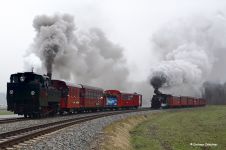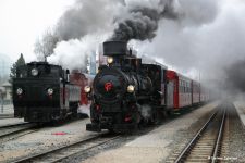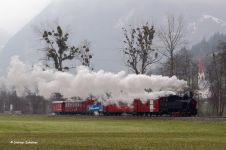Großdampftag im ZillertalWährend der letzten Monate befand sich die Dampflokomotive Kh101 in Jenbach, wo sie in der Werkstätte der Zillertalbahn eine Hauptausbesserung erhielt. Den positiven Abschluss dieser Arbeiten konnte man am 06.04.2013 im Rahmen einer einmaligen Sonderfahrt erleben. Die Kh101 beförderte einen Sonderzug von Jenbach nach Mayrhofen und zurück. Am gleichen Tag war ein weiterer Dampfsonderzug unterwegs, der mit der 83-076 bespannt war. Die Fahrgäste dieses Zuges waren mit dem "Hochfrankenexpress" aus Hof (Zuglok 103 245) angereist. Der Höhepunkt der Fahrten war sicherlich die erstmals in der Geschichte der Zillertalbahn durchgeführte Parallelfahrt zweier Dampfzüge zwischen Kaltenbach-Stumm und Aschau. Hier ist die Strecke seit 2008 zweigleisig ausgebaut. Weitere einmalige Fotomotive ergaben sich aus der Tatsache, dass die Kh101 "verkehrt" stand, die Rauchkammer "blickte" talauswärts. Die Rückkehr der Kh101 nach Weiz erfolgt dieser Tage per Bahntransport. Dietmar Zehetner Und natürlich gibt es davon einige wunderbare Bilder: | ||||||||||||||||||||||||