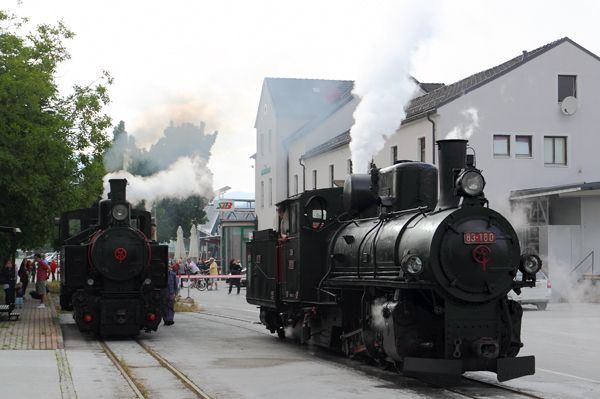 Unsere 83-180 fährt wiederNach einer längeren Pause wurde unsere 83-180 wieder in Betrieb genommen. Am 14.06.2014 wurde sie von Birkfeld nach Weiz überstellt. Dies geschah im Rahmen der Rückfahrt des samstäglichen Personenzugs, daher kam es zu einer Doppeltraktion der Dampflokomotiven Kh 101 und 83-180. Die 83-180 wird in den nächsten Wochen die Ausflugszüge auf der Feistritztalbahn bespannen, während an der Kh 101 Arbeiten an der Steuerung in der Werkstätte Weiz durchgeführt werden. Dietmar Zehetner